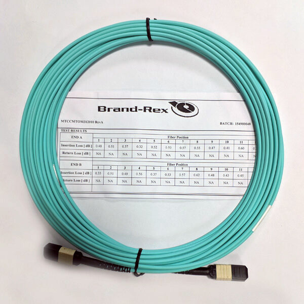 CABLE DE FIBRA ÓPTICA PRE-CONECTORIZADO DE 12 HILOS MULTIMODO OM3 CONECTOR MPO A MPO DE 10 METROS, BRAND-REX MTCCMTOM312010